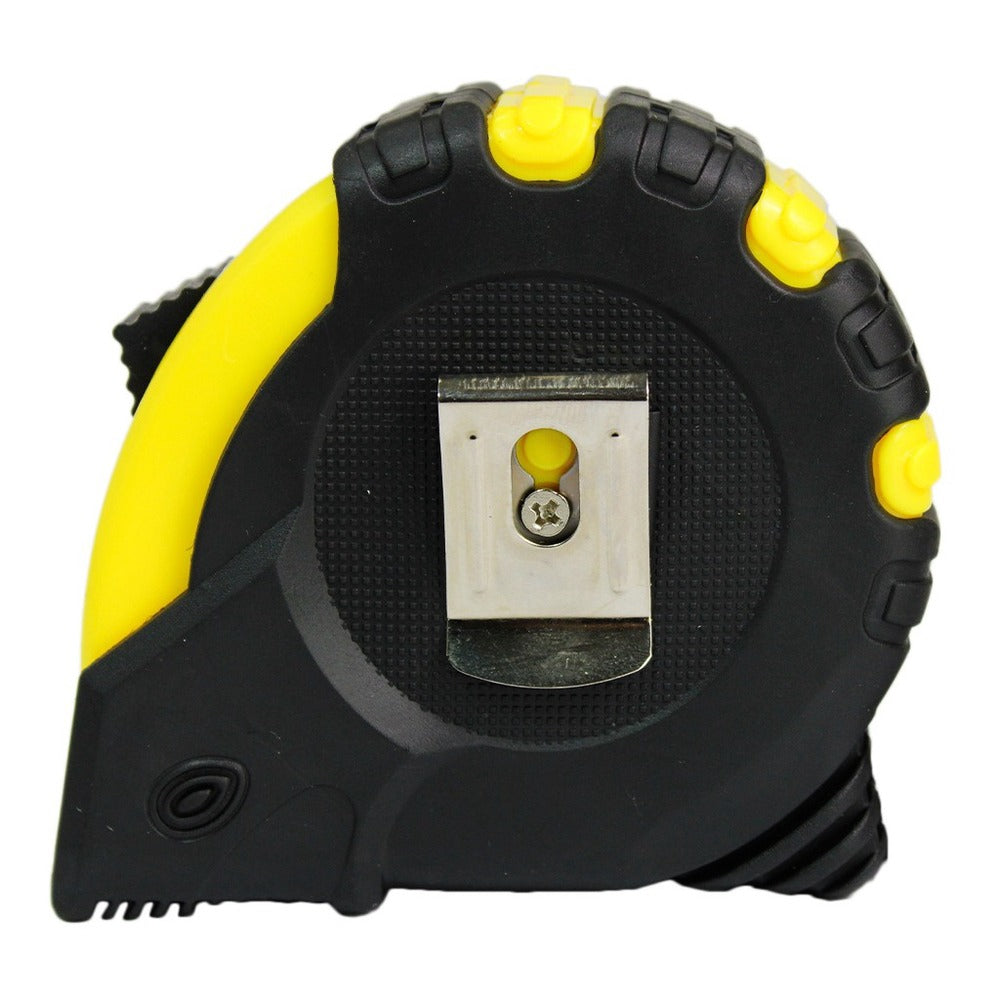 A trena é usada para medir distâncias de maneira geral, sendo utilizada por pedreiros, marceneiros, carpinteiros e muitos outros profissionais. A trena manual tem como característica principal o sistema de mola que retrai a fita de aço graduada em milímetros e polegadas. Possui opção de travamento e corpo em emborrachado.